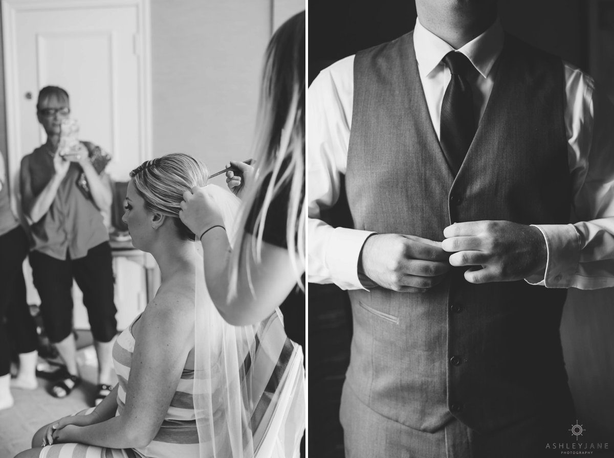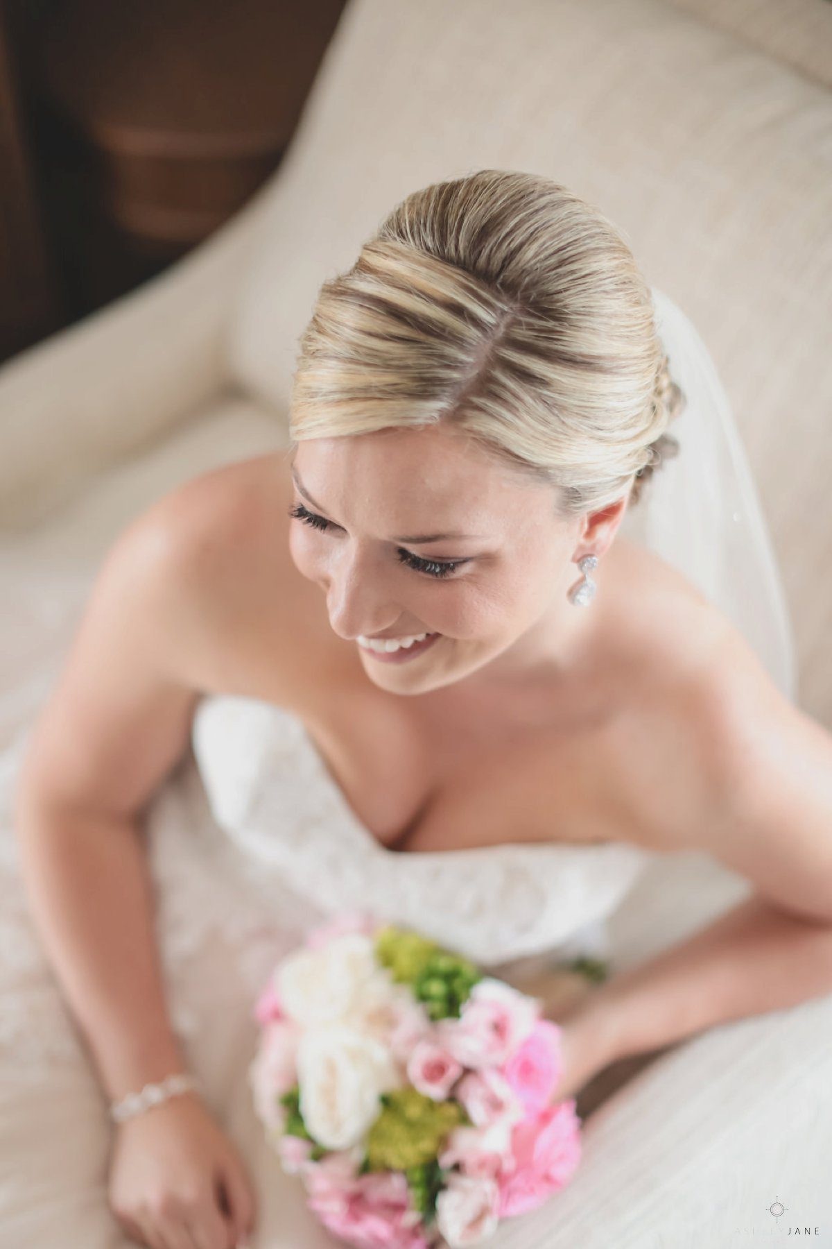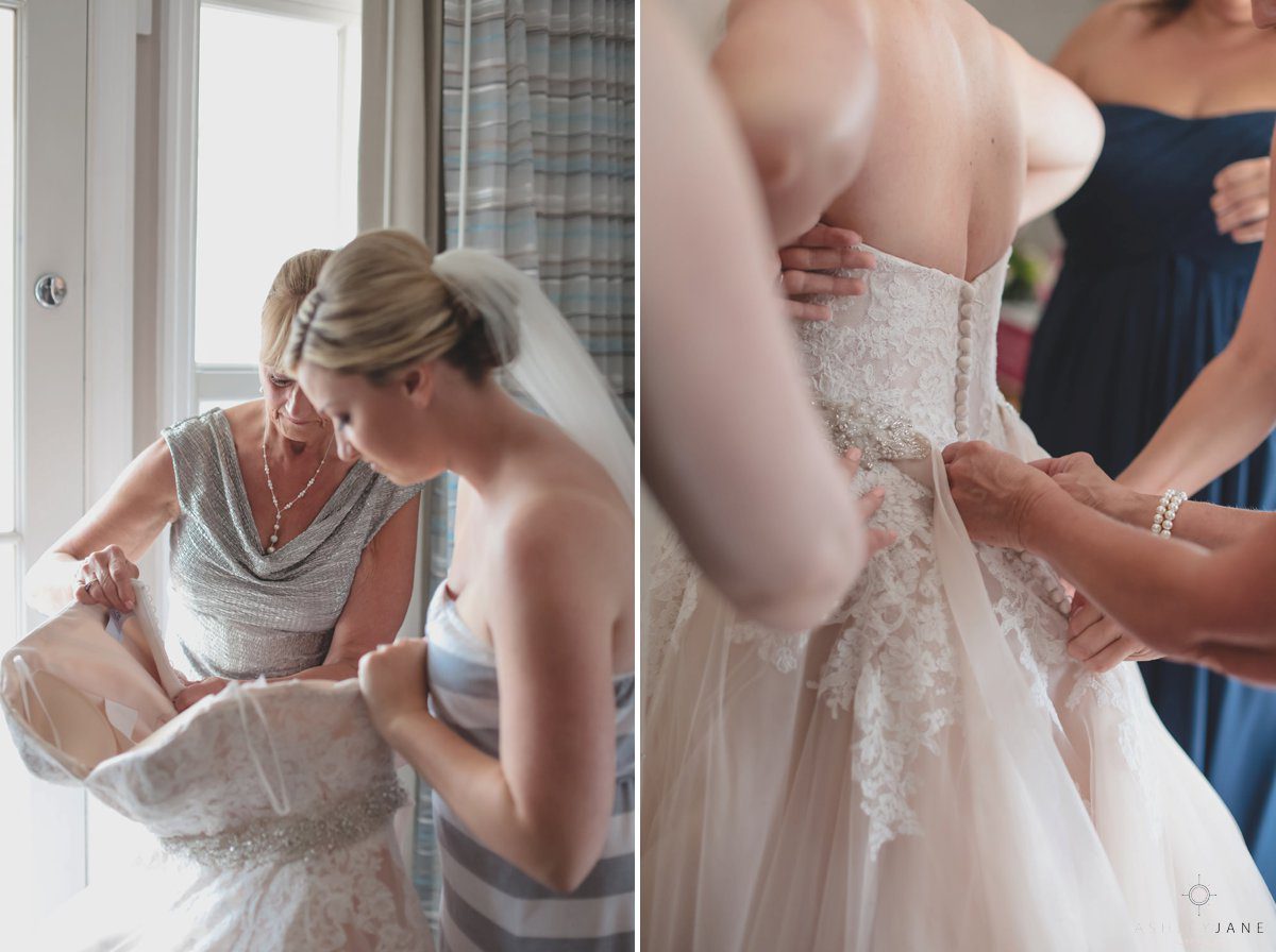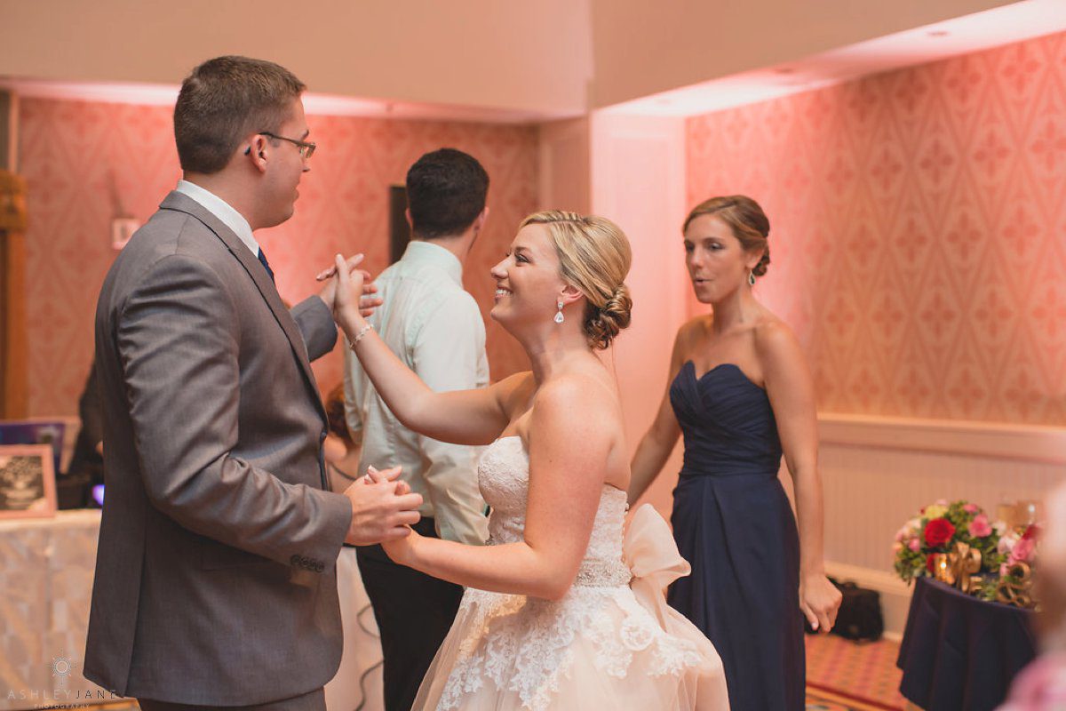 The elegant white gazebo at Sea Breeze Point was made into the perfect romantic spot with three floral arrangements framing their alter and pink petals lining the aisle. After the ceremony the guests were invited to a cocktail hour on the lawn next to Sea Breeze Point. There they enjoyed the music from a string player and a cheese table.