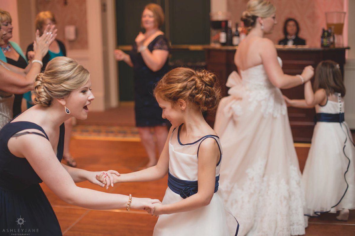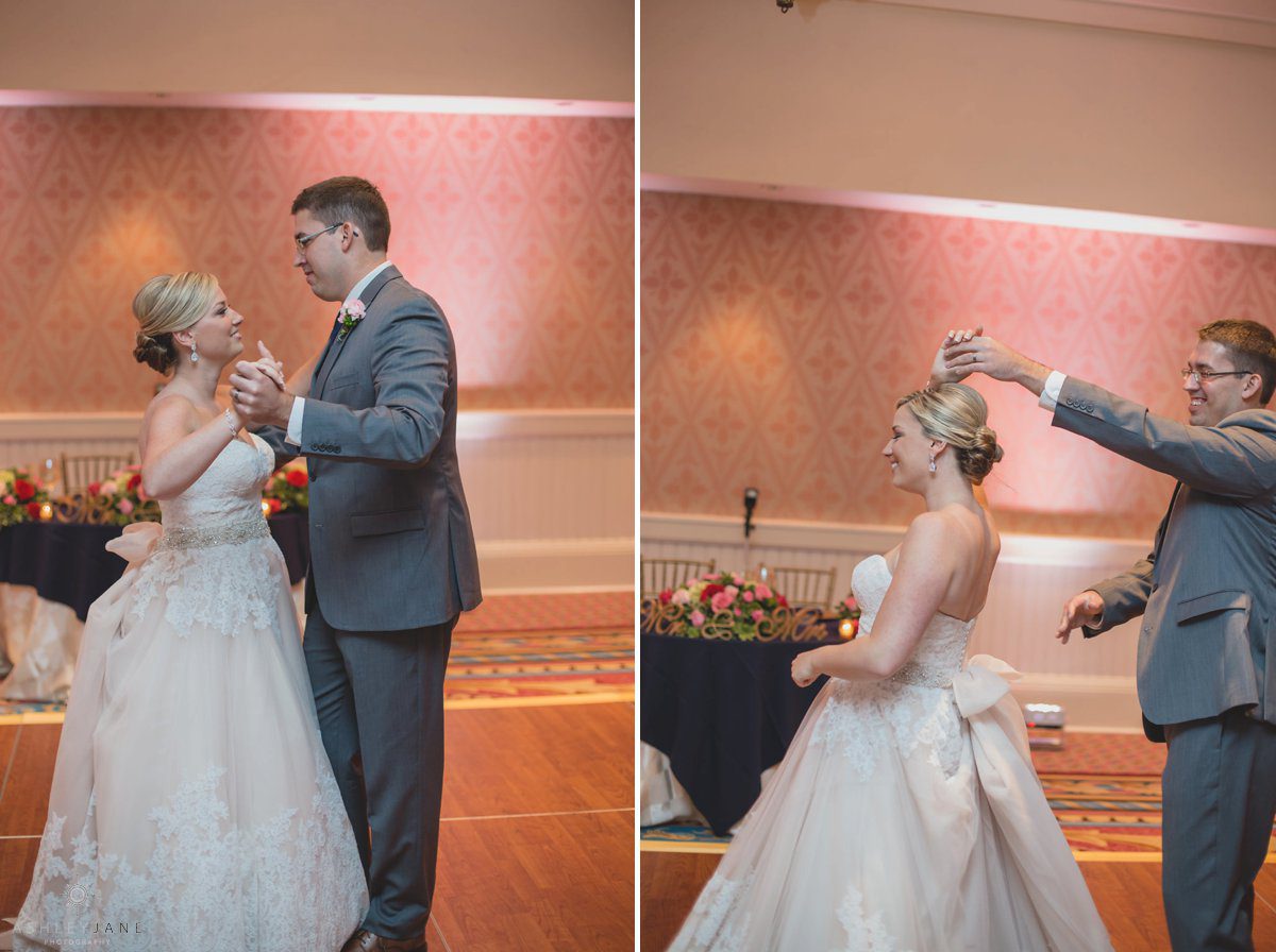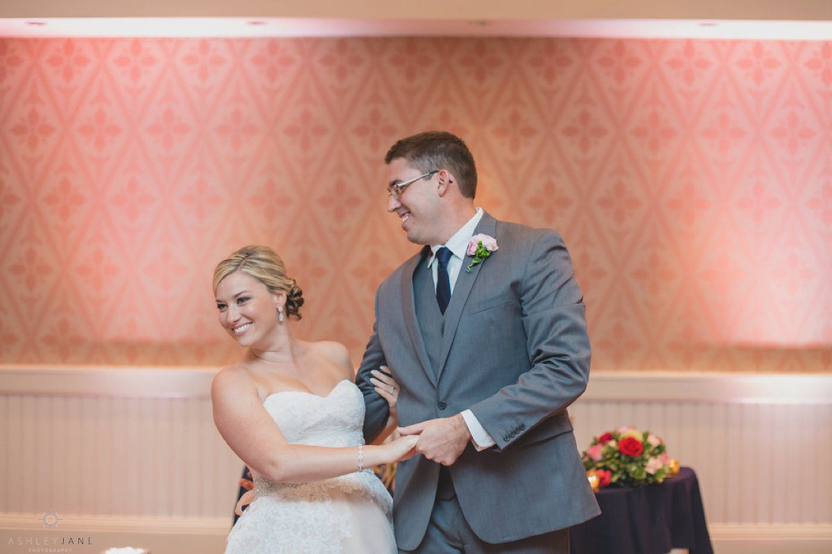Rachel and Corey’s reception was held at the St. James Place at the Boardwalk Convention Center. The room was beautifully arranged in gold and pink. Each table was marked by a poster from vintage Disney love stories.