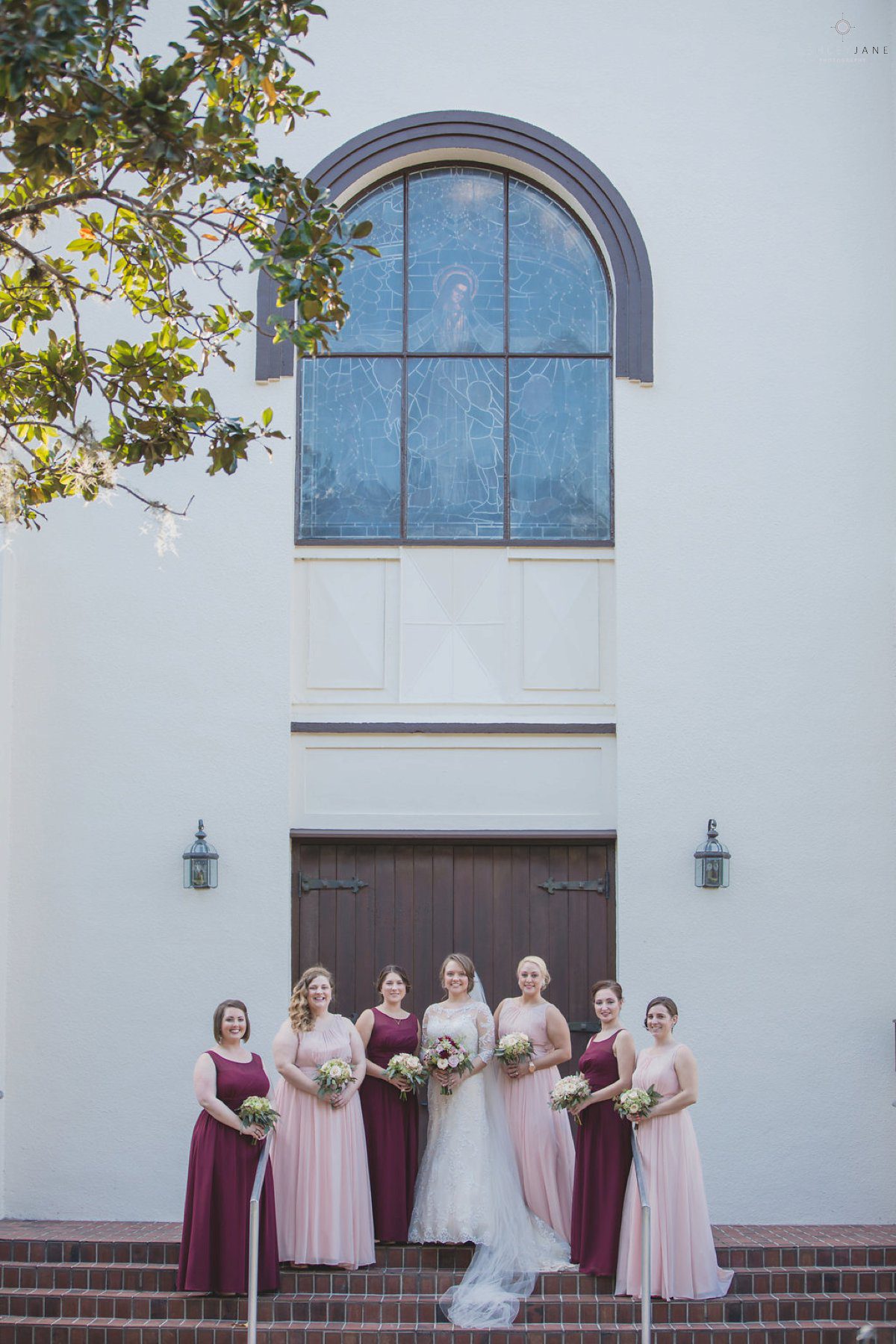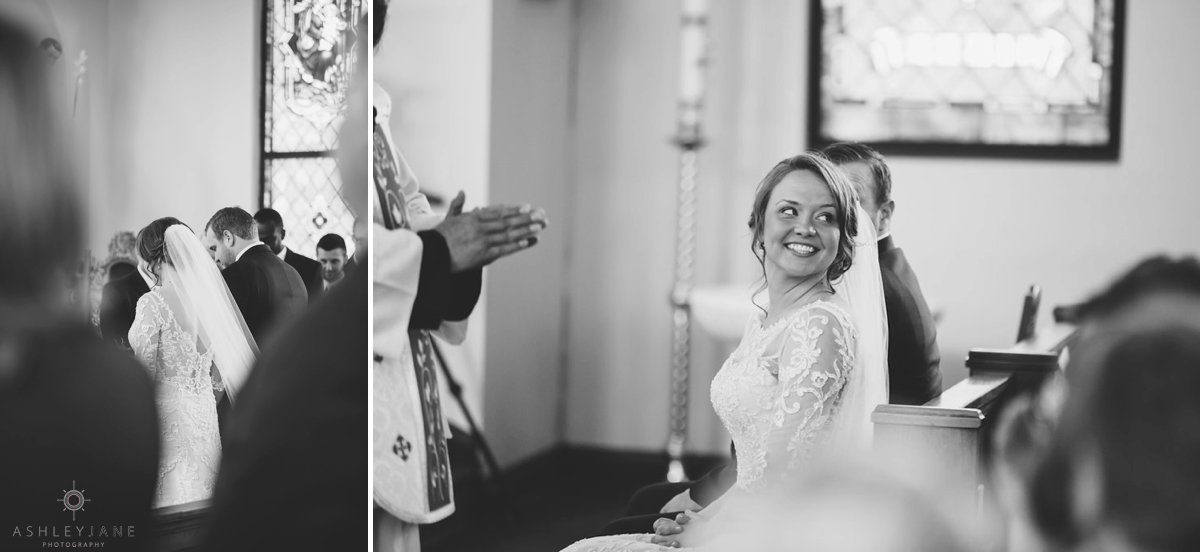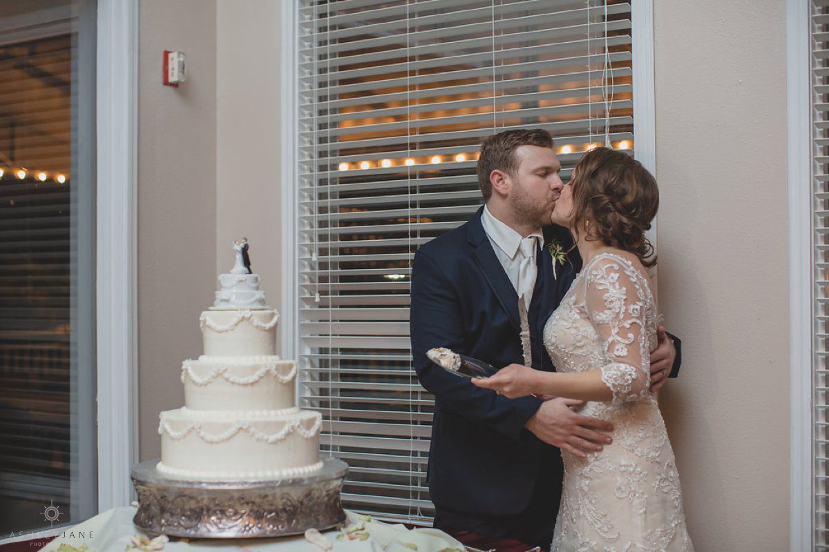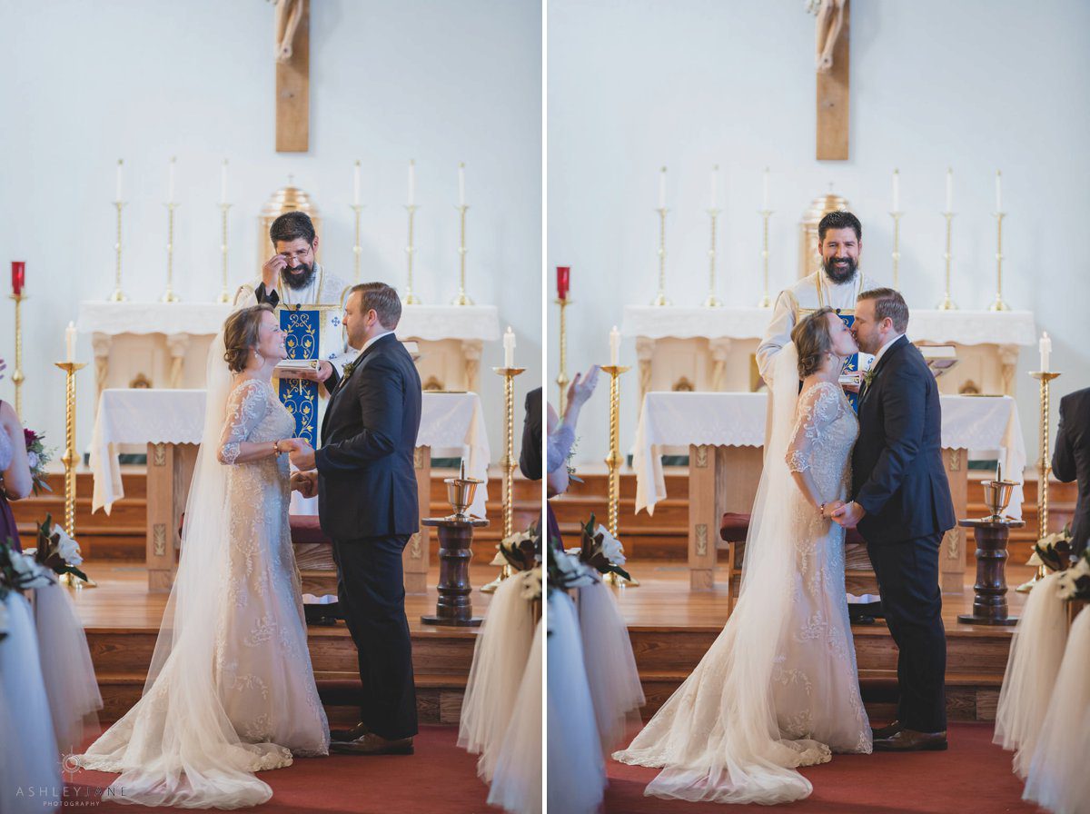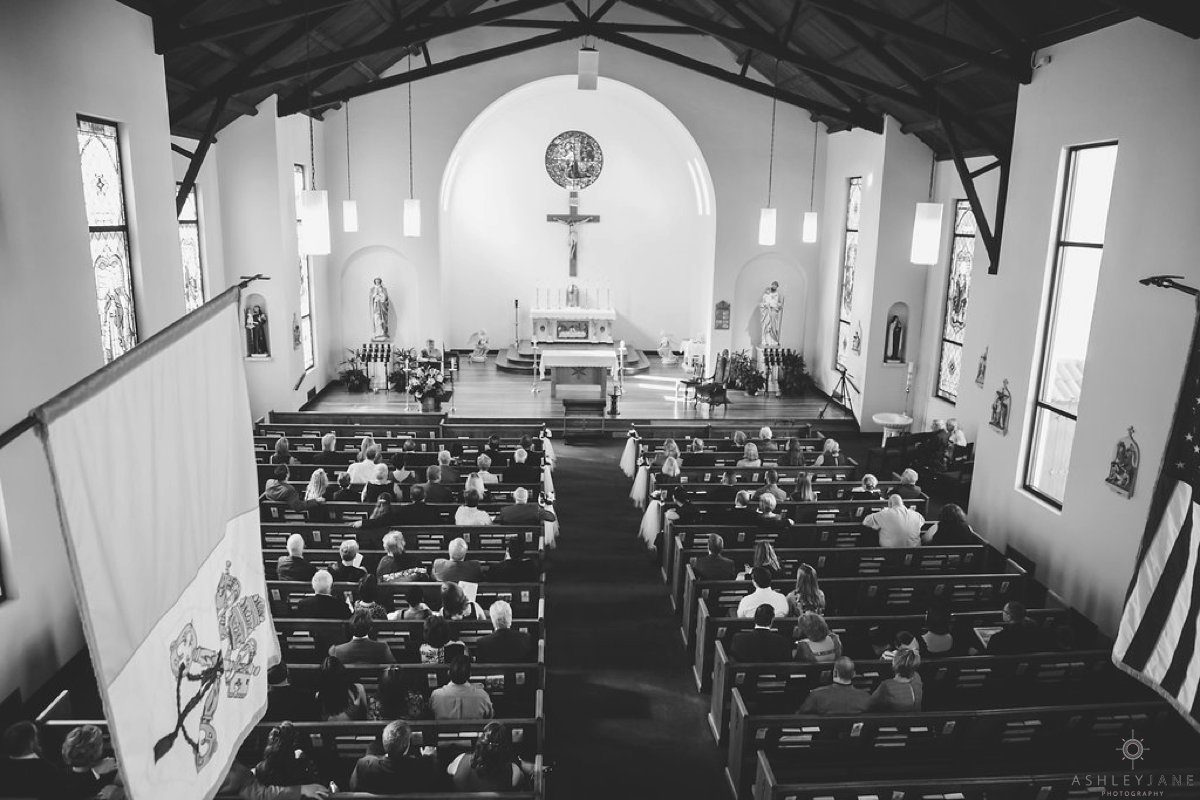 Ty and Allison had a very traditional church ceremony at All Souls Historic Chapel. The historic chapel was beautiful with high ceilings, allowing for a second level balcony, and tall stand glass windows. The aisle was lined with tulle and magnolias.