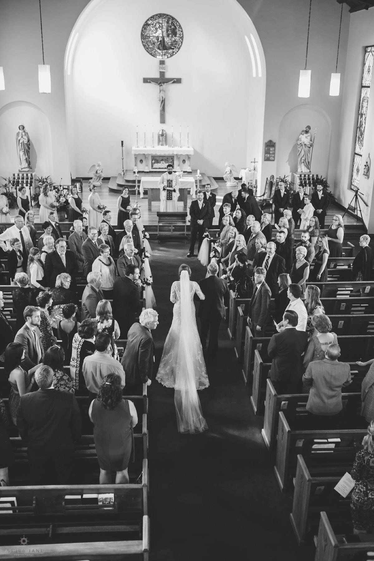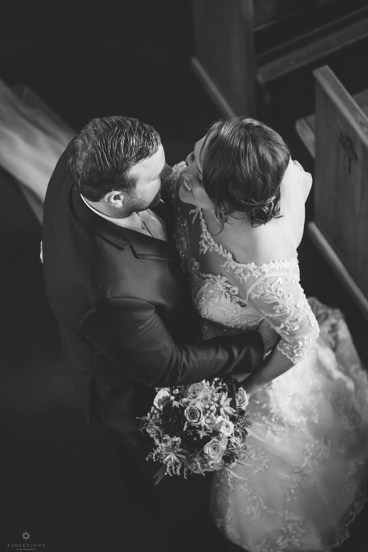It was important to Allison to capture a shot of her and Ty in the church, one that captures the beauty and uniqueness of the historic chapel. We love the images of Allison and Ty taken from the second level inside the chapel.
