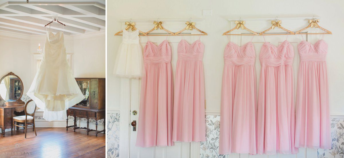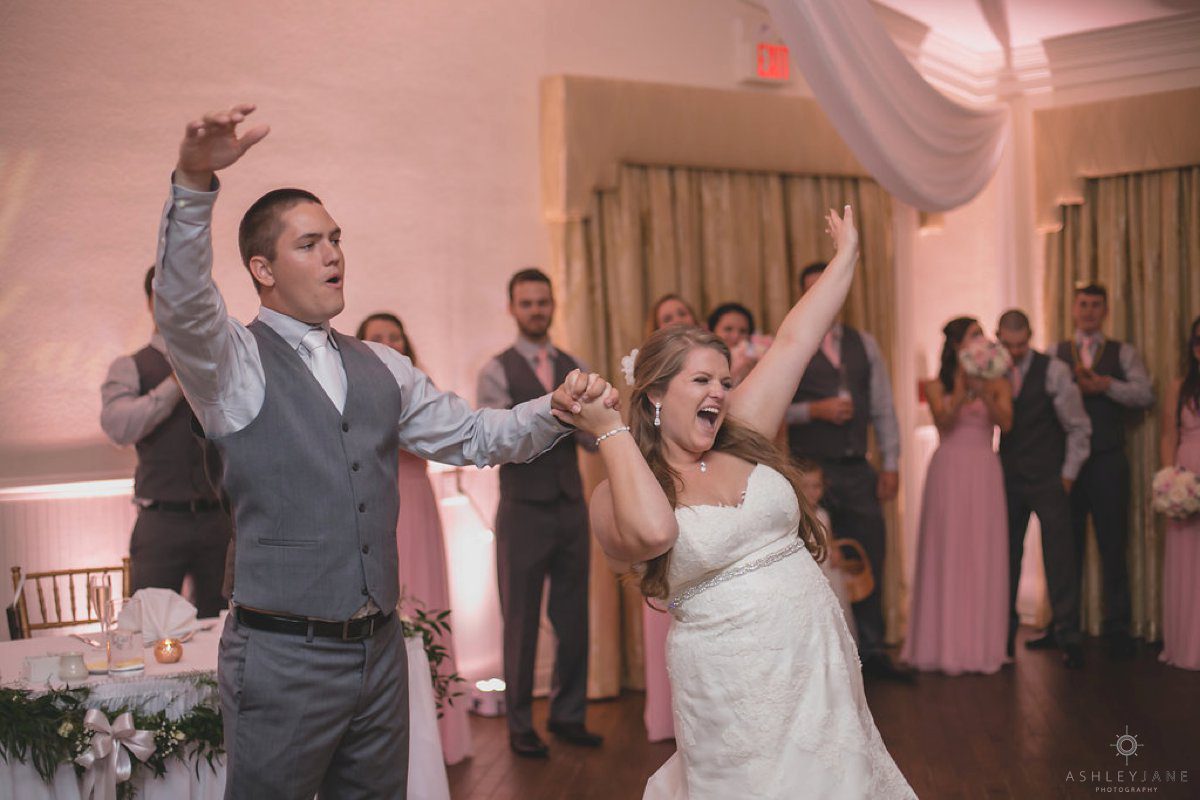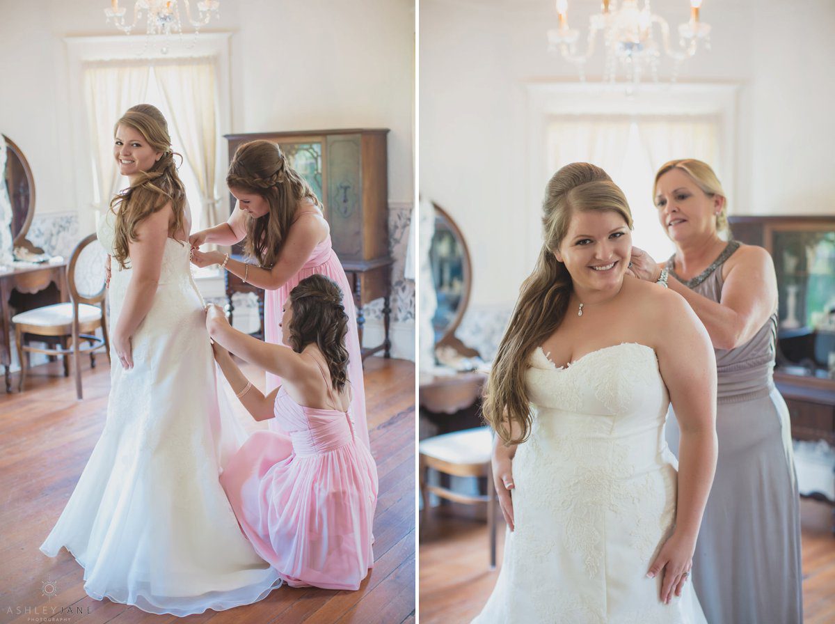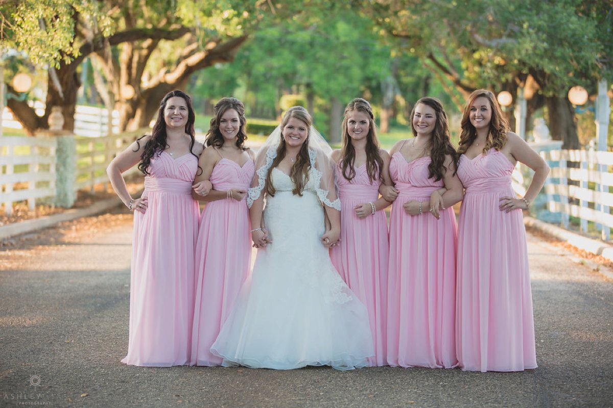 Ashley was stunning in her ivory, lace from Solutions Bridal Designer House. Her bridesmaids wore light pink dresses. They each carried bouquets of light pink and white roses made by Dream Designs Florist + Wedding Boutique.