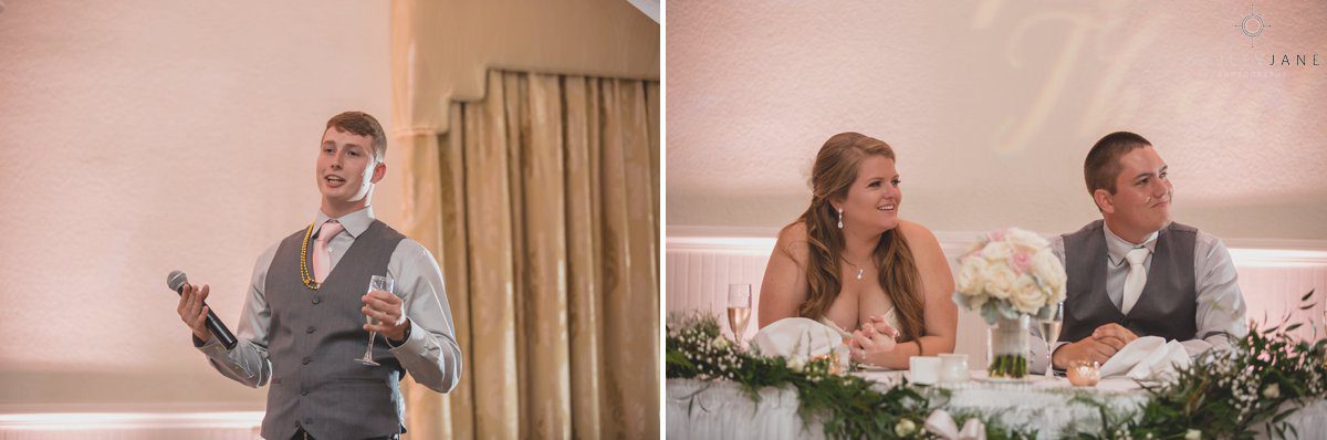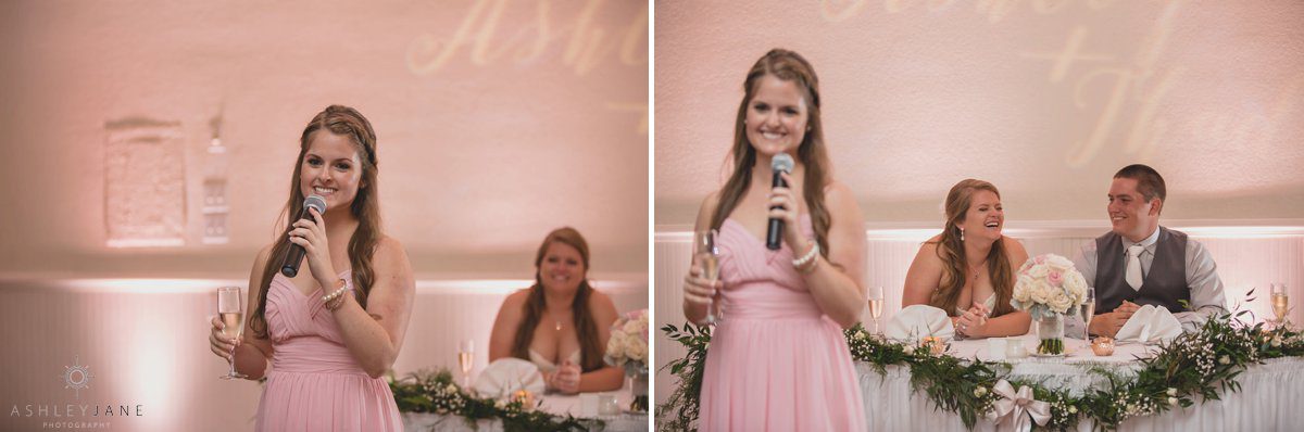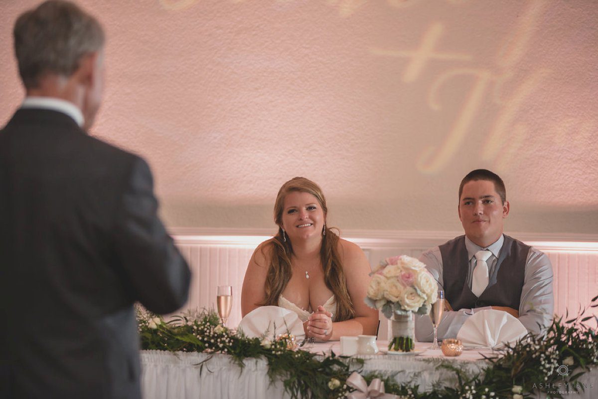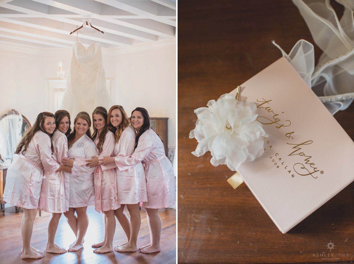 Ashley was stunning in her ivory, lace from Solutions Bridal Designer House. Her bridesmaids wore light pink dresses. They each carried bouquets of light pink and white roses made by Dream Designs Florist + Wedding Boutique.