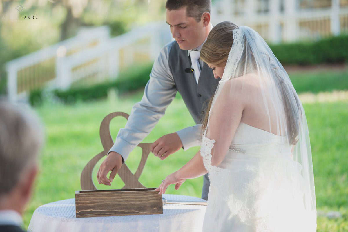 Since they both have a love of the outdoors, the oak-shaded lawn of this Highland Manor wedding was the natural backdrop for their ceremony. With family and friends watching, Ashley and Thad said their wedding vows with Ashley’s uncle officiating. Their ceremony included closing their wine box with love letters written to each other which will be opened on their first anniversary. After the ceremony, we took marriage portraits on the picturesque grounds throughout Highland Manor.