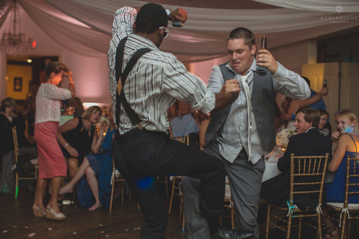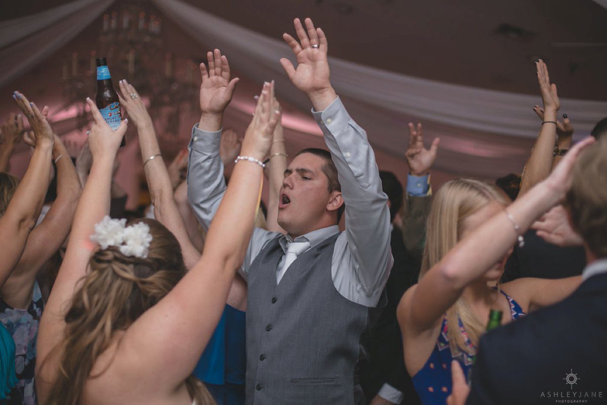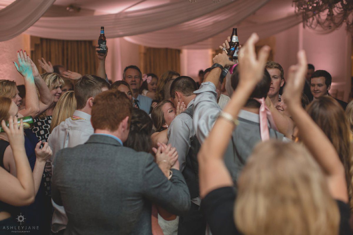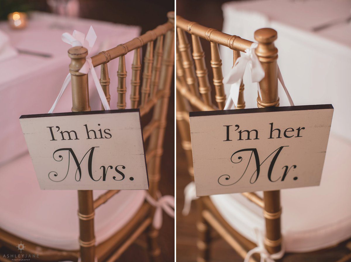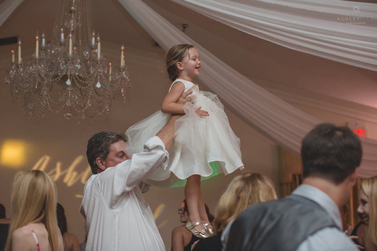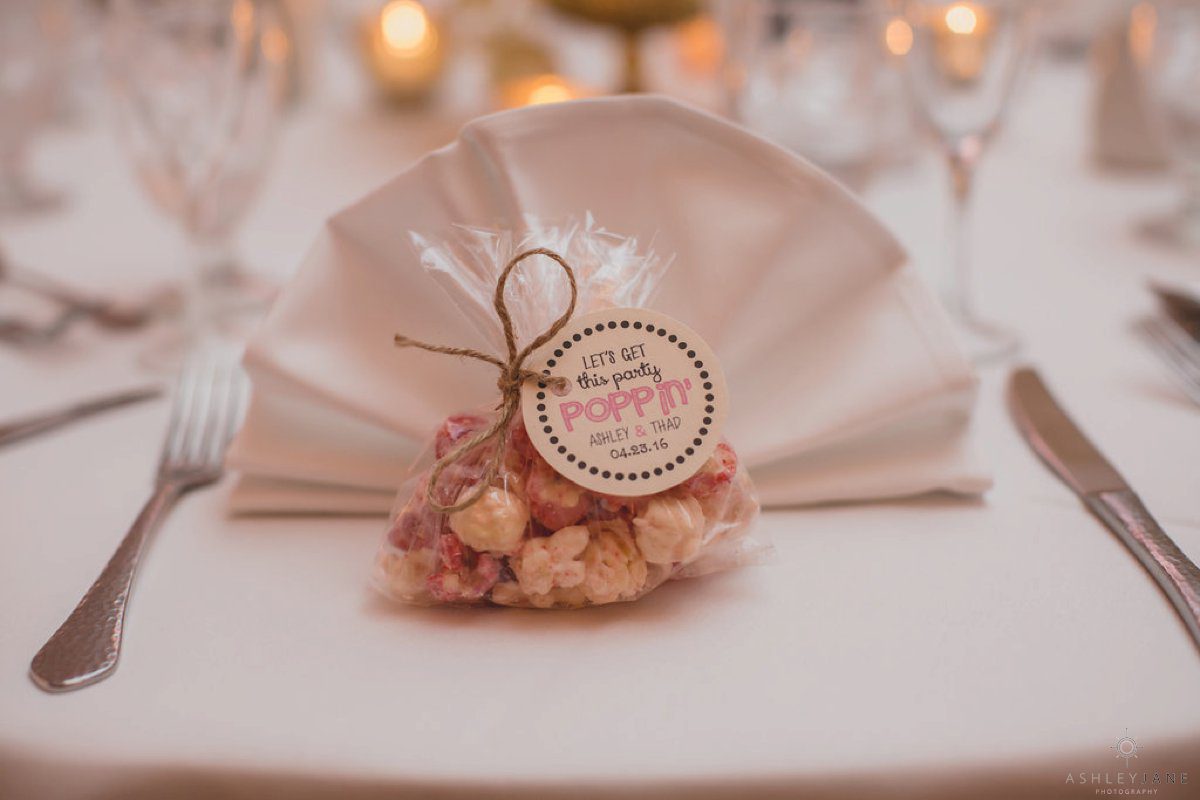 Their reception, held in the Crystal Ballroom at Highland Manor, was decorated with a soft, romantic feel. Her colors of pink, ivory, shimmery gold, and charcoal grey are seen in the floral arrangements, candles, the cake and party favors. For a personal touch, Thad and Ashley had photographs of themselves on each table indicating the table number. After a night filled with dancing, they made their exit with family and friends sending them away in a cloud of bubbles. Apollo’s Chariots Inc was waiting with a limo to take them away.