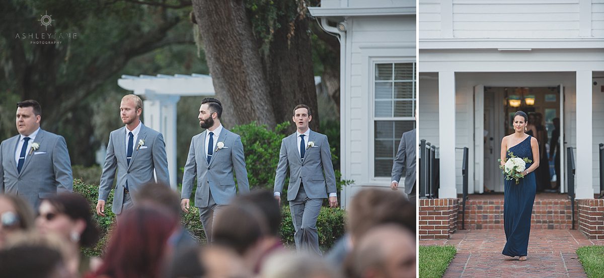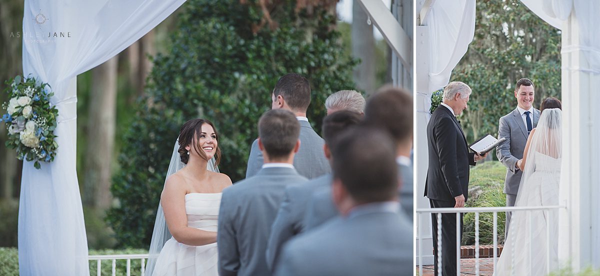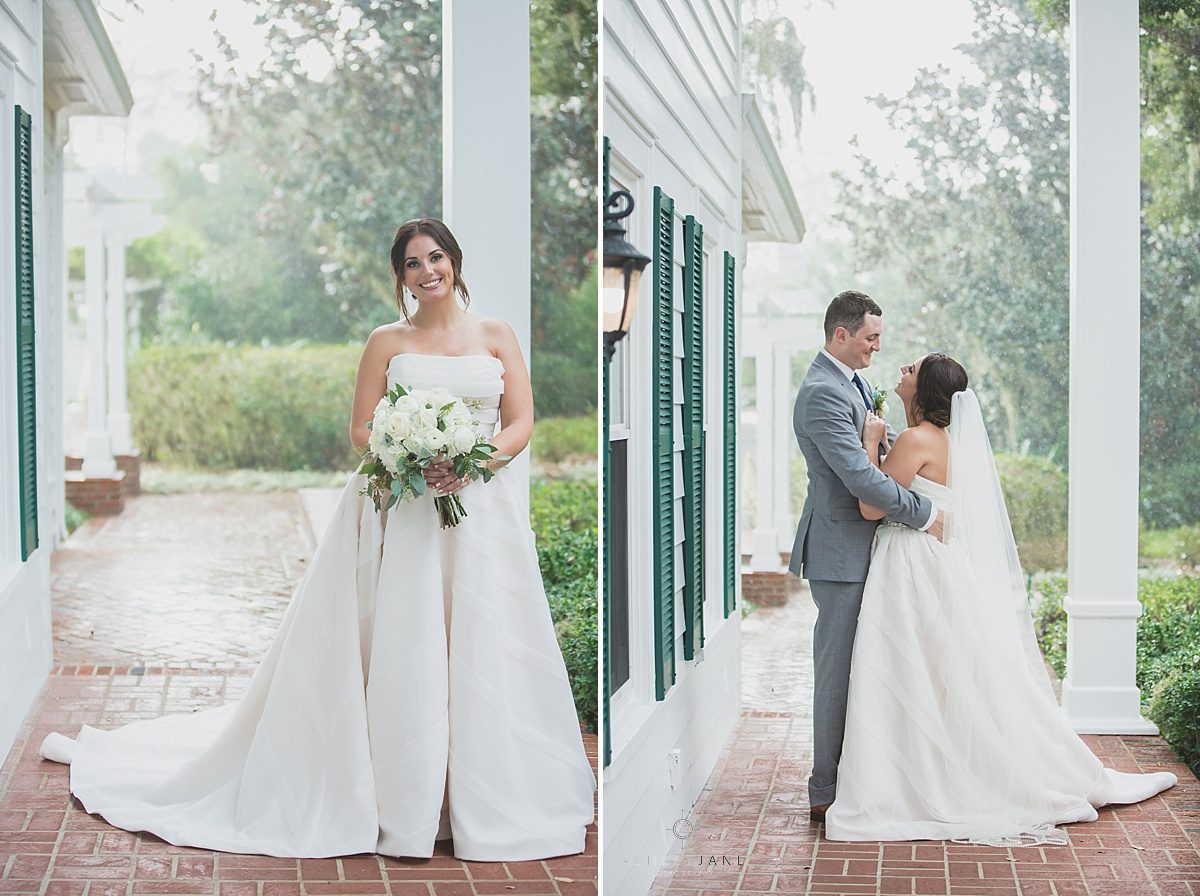 After the ceremony, the bridal party and the bride and groom gathered together for their portraits. The bride looked absolutely stunning and her bouquet was as dreamy as it gets! The groom was all smiles during their portraits. Probably our favorite are the shots of them in the garden of Cypress Grove Estate House. The magnolia’s in the garden, Cypress Grove’s signature white house with green shutters, and shining rays through the canopies of the oak trees is the epitome of a Southern Estate House Wedding.