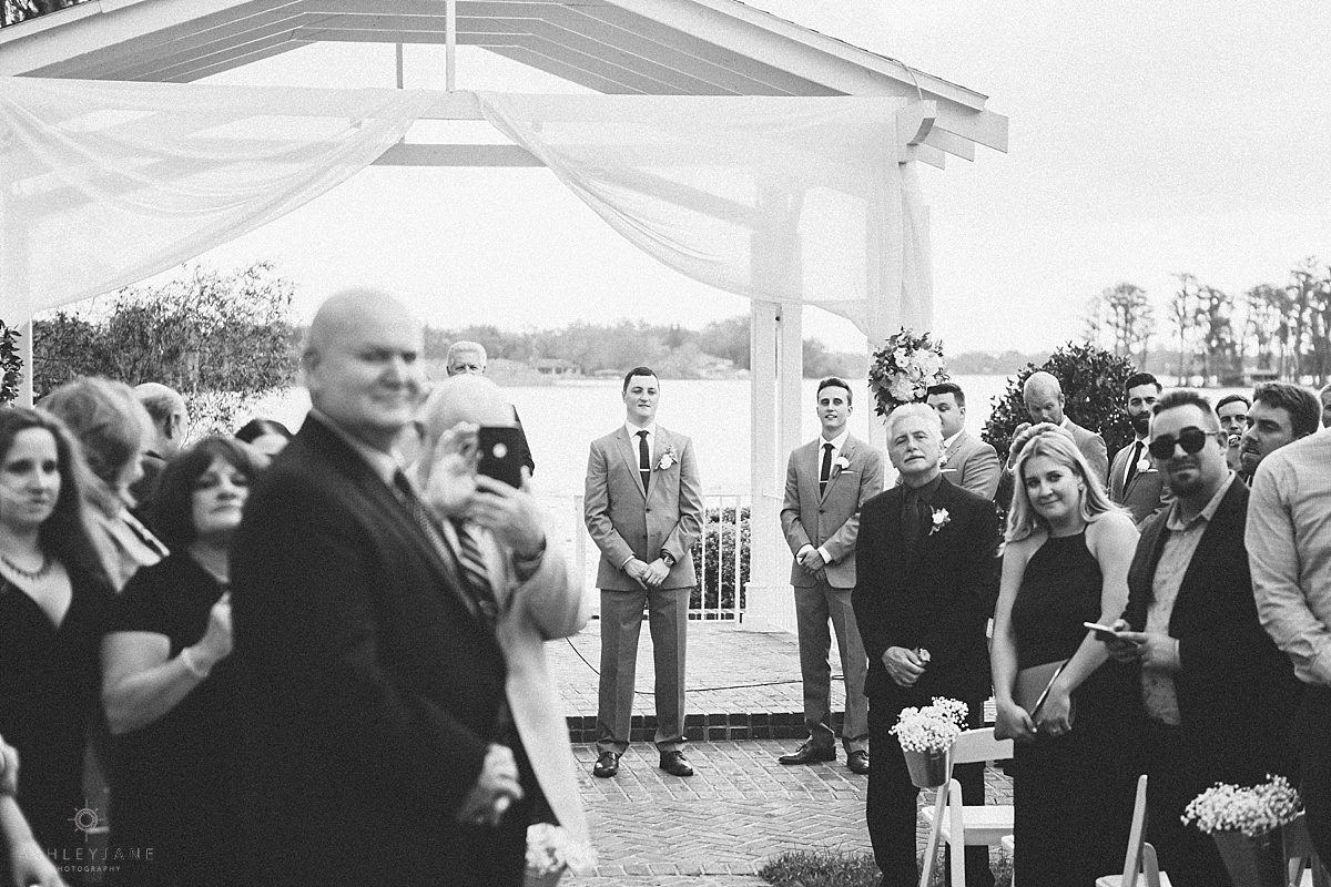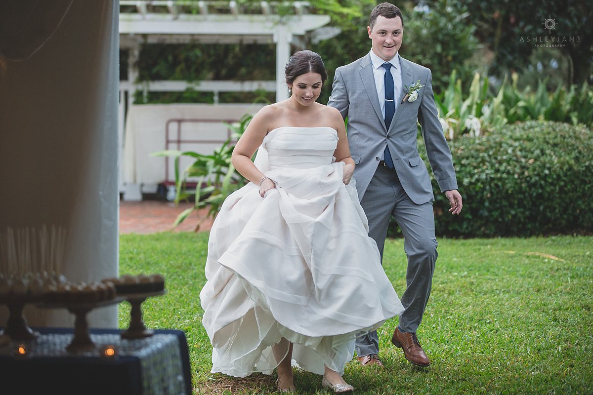 The bride and groom wanted to share one last dance together alone under the full moon on the brick pavers of the backyard of the Cypress Grove Estate House. They held each other and slow danced to Nat King Cole ‘That’s All’.