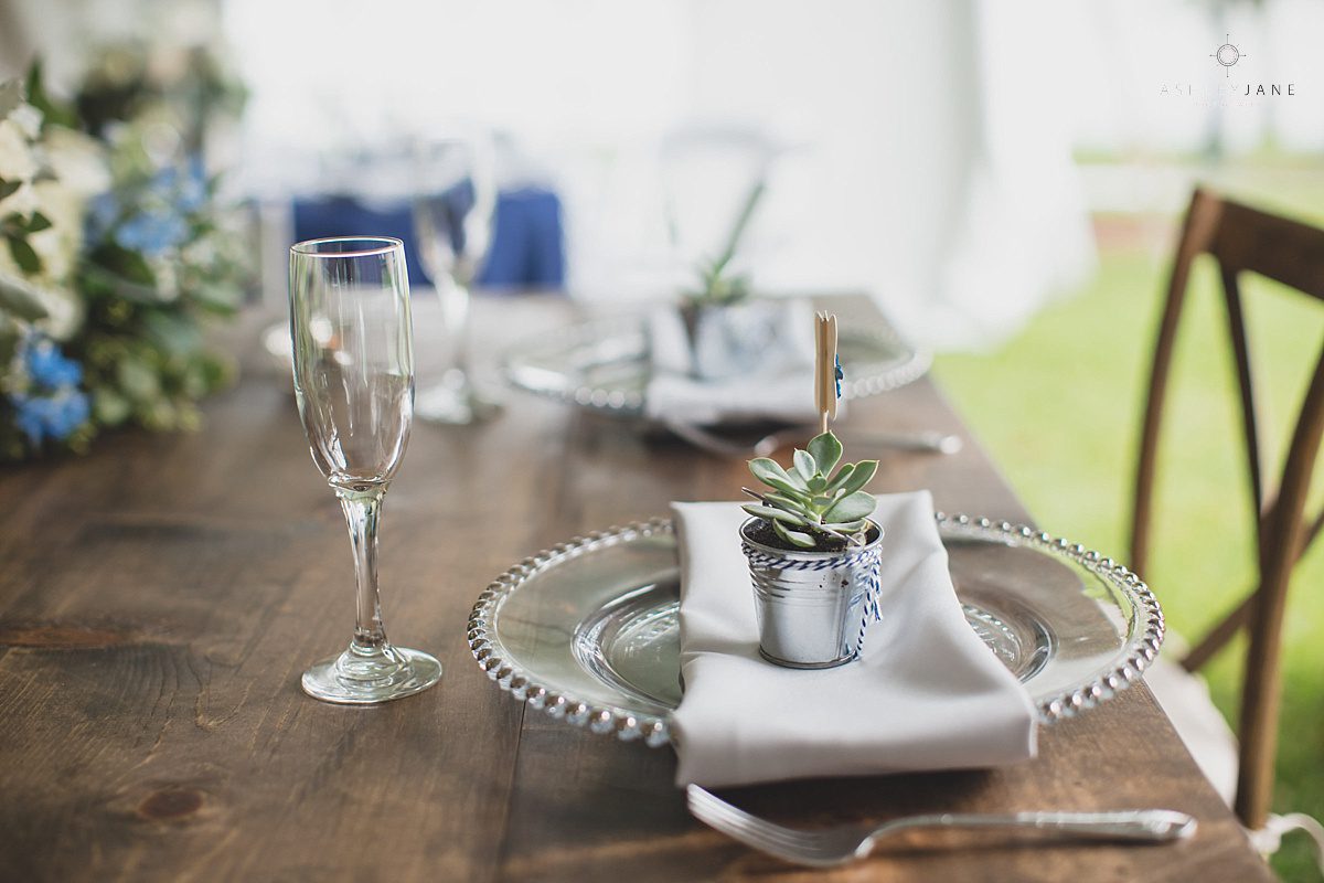 The details of this Southern Estate House Wedding were impeccable and had so much meaning! The bride and her mom painted the centerpiece boxes and the table runners were done by the mother of the bride as well! These DIY details were laid across rustic walnut stained farm tables perfect for the southern estate house wedding theme. Succulents adorned each plate with a chalkboard place setting for each guest. The cake table was absolutely gorgeous! The minimalistic two tier cake with sugar succulent flowers was oh so pretty! They even had monogrammed sugar cookies with their last name’s initial to tie it all together.