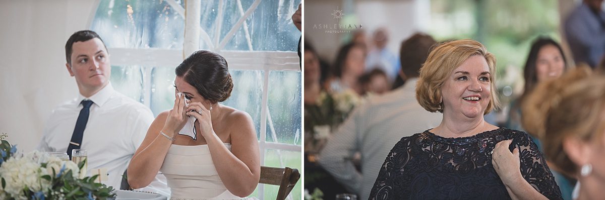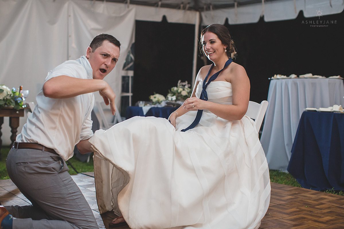 The reception was held under a tent on the grand lawn of Cypress Grove Estate House. It gave it the cozy yet, relaxed feel being on the lawn. Guests danced all night long and the groom gave an amazing performance while removing his bride’s garter. We must say he was not shy – at all and really owned the moment! The couple also celebrated a sweet moment of a family friend’s 45th wedding anniversary. It’s so sweet that they took into consideration their friend’s special day and had their DJ do a shout out to the happy couple!