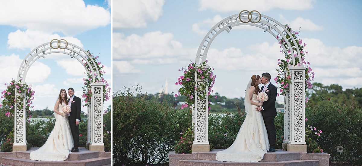 This “happily ever after” starts at the Villas at The Grand Floridian where they get ready for their big day. The intimate wedding is at the Wedding Pavilion. Here they are in a world of their own as their life together begins. It’s a beautiful, blue sky day and their much anticipated photo at Picture Point is absolutely perfect.